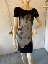 Description: These pictures speak for themselves! So simple, and yet so fabulous…and as it’s a stretchy rayon knit, it’s comfortable too. Solid black in back, black with abstract image (flowers?) in front, short sleeved with scoop neckline (the back is extra scooped!) 95% viscose rayon/5% elasthane, made in Turkey.