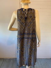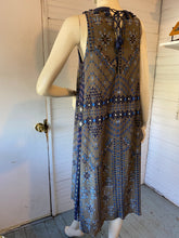 Description: Hello, summer weather? I got your dress right here! Absolutely gorgeous boho chic from Sea New York, 70% cotton/30% silk with polyester lining. The print, the embellishments, and the high-low hem are all very nice, but check out that lace-up detail in back! It even has pockets.