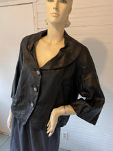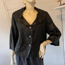 Description: I’ve been a fan of the Oska brand for YEARS and I didn’t know about the Ischiko line until literally last month and if this jacket is any indication, I’ve really been missing out! Absolutely gorgeous construction and details. I’m nit sure what kind of finish is on this linen fabric, but it’s wonderfully weighty and glossy. Fully lined and the lining’s cool, too. Black/.white contrast buttons. Made in Austria.