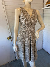 Description: This is no ordinary BR, it’s an Issa London/Banana Republic Collection collaboration! Nylon/rayon/spandex fabric in tan/brown leopard print, fitted bodice, full skirt, hip level pockets and center back zip with hook/eye closure.