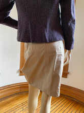 Description: 100% cotton, khaki tan skirt with sculptural pleating, made in Belgium.