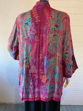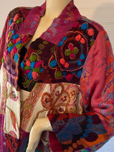 Description: Absolutely gorgeous rayon tapestry single-button front jacket, lavishly embroidered in front but just as stunning in back without the embroidery. Outer part is 100% rayon, full lining is polyester. Made in India.
