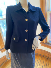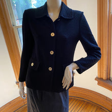 St. John Black Knit Jacket with Goldtone Metallic Logo Buttons, size S